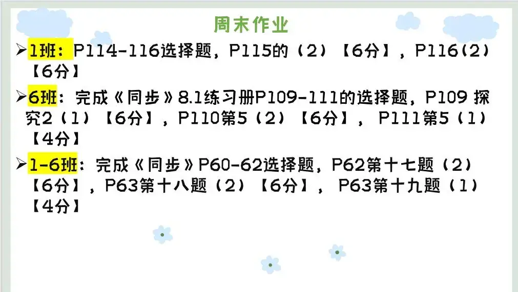 - 用A4纸完成第13、14、15、16章的思维导图,可以参照练习册(大本)
