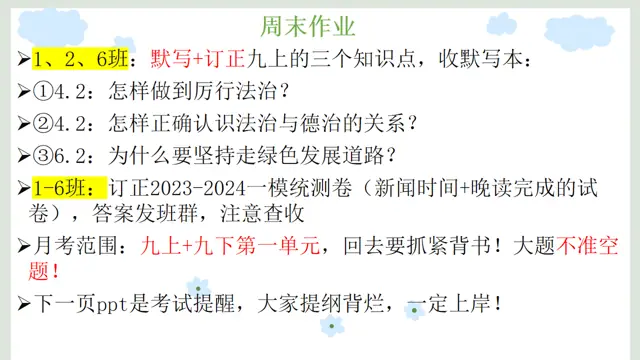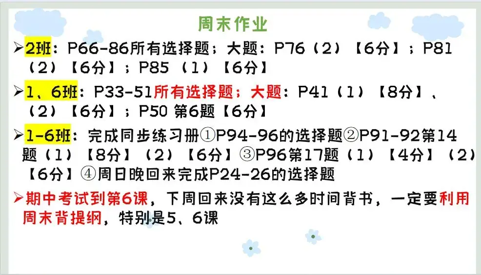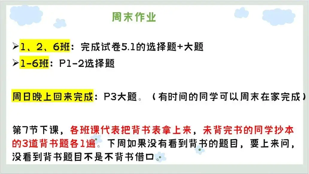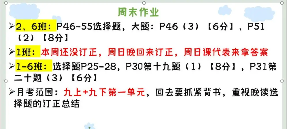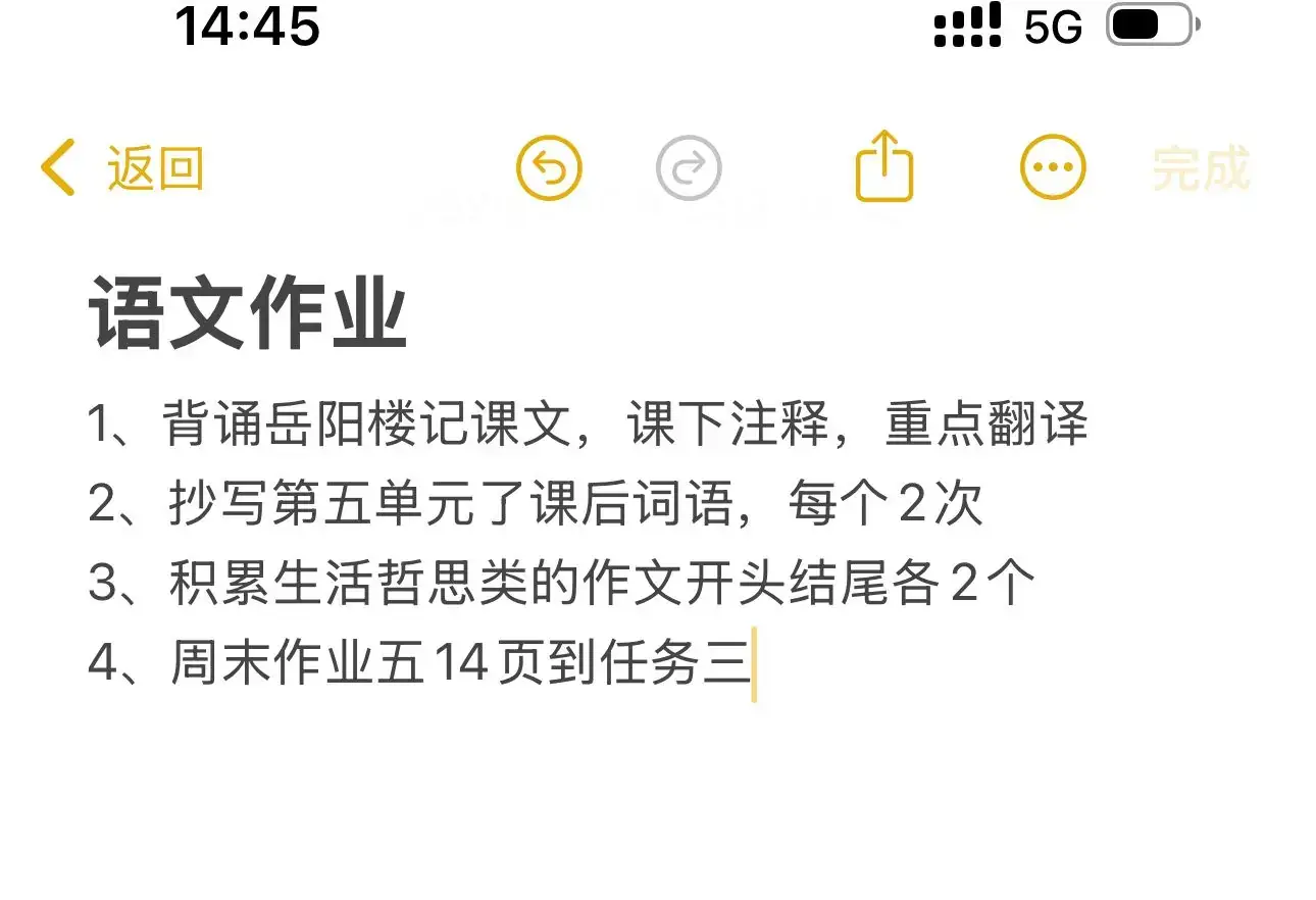 - 背诵《岳阳楼记》,周一晚自习抽背