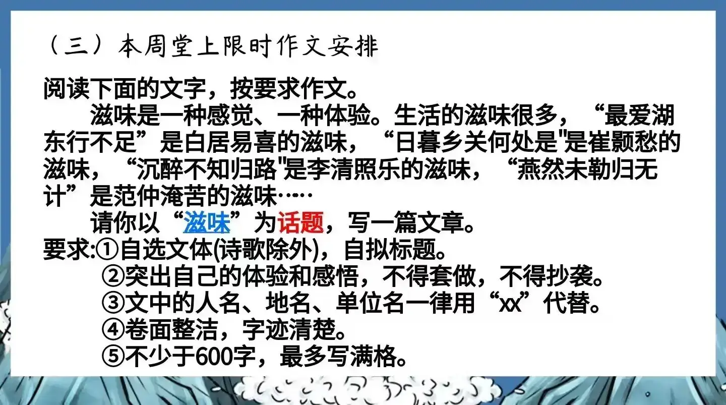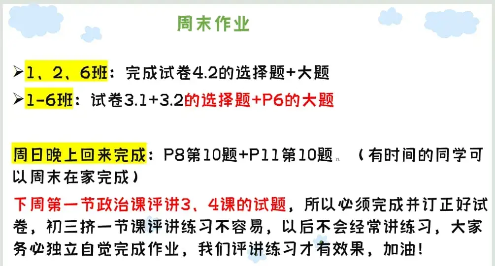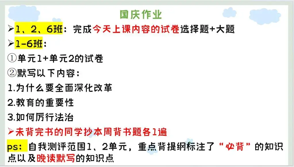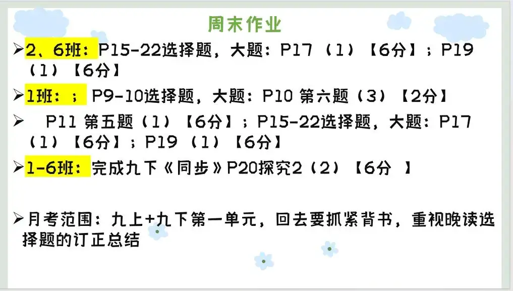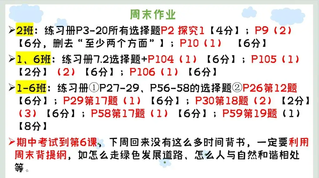 - 背诵《岳阳楼记》,周一晚自习抽背
