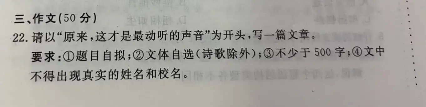 - 写在作文纸上,不少于600字,文体不限,诗歌除外